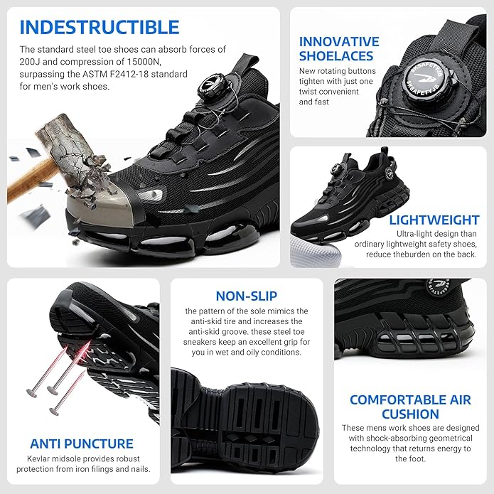 ✅ Anti-Smash Steel Toe – Protects your toes from falling objects and heavy impact.